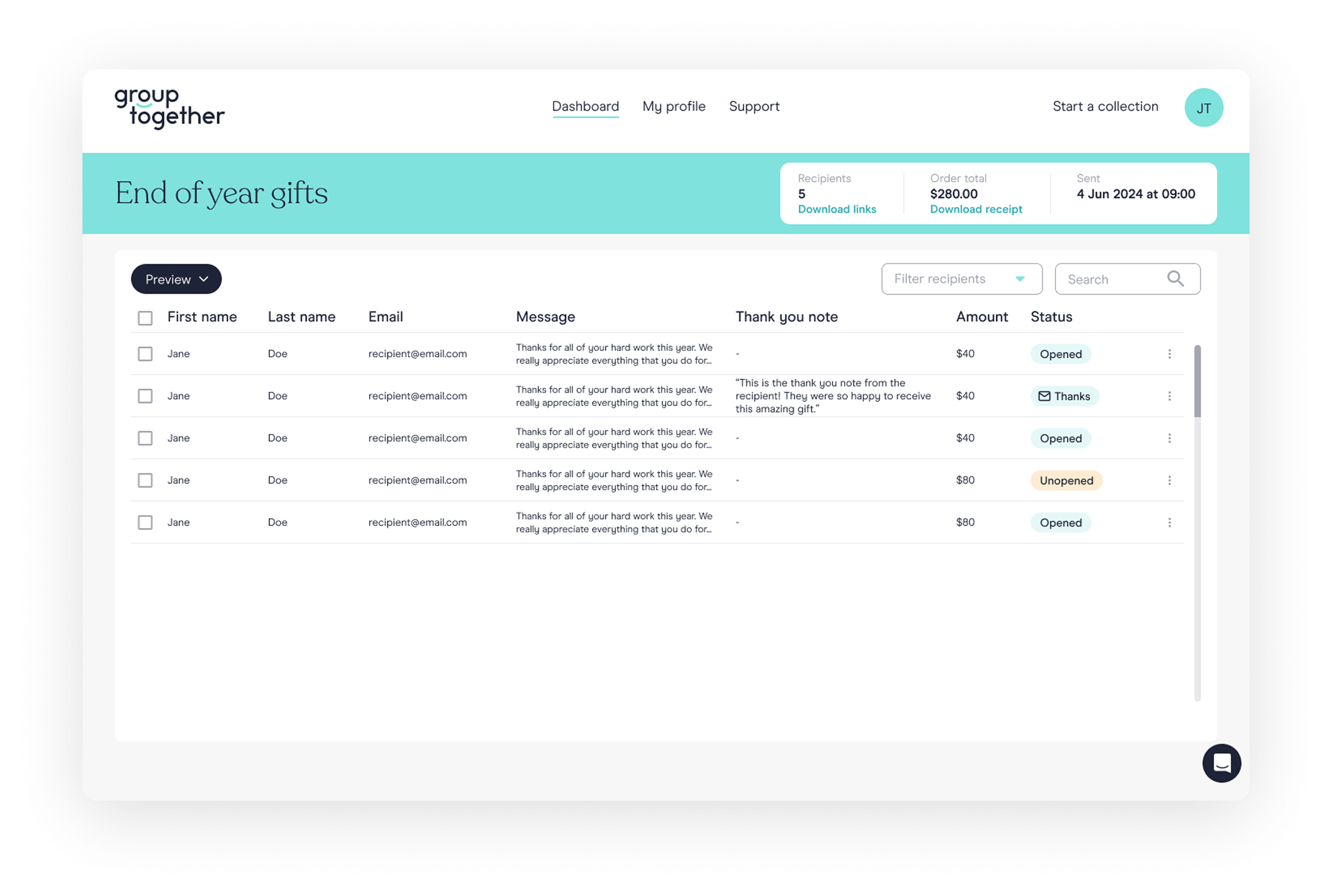 Bulk eGift Cards are the simplest way to give something thoughtful without the admin headache. With GroupTogether you can: